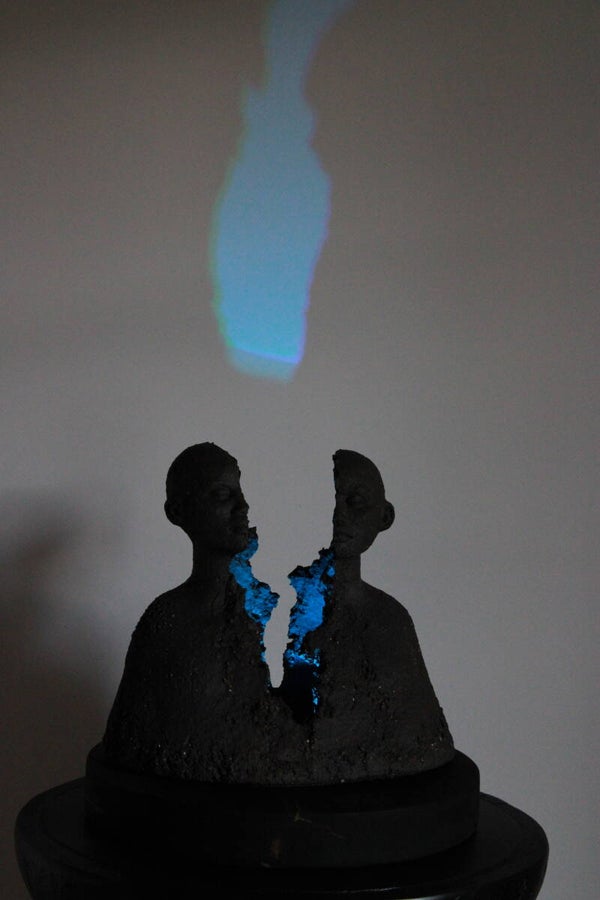 Conseil : pour une mise en valeur optimale, placer la sculpture dans un environnement légèrement tamisé afin de révéler pleinement la diffusion lumineuse.